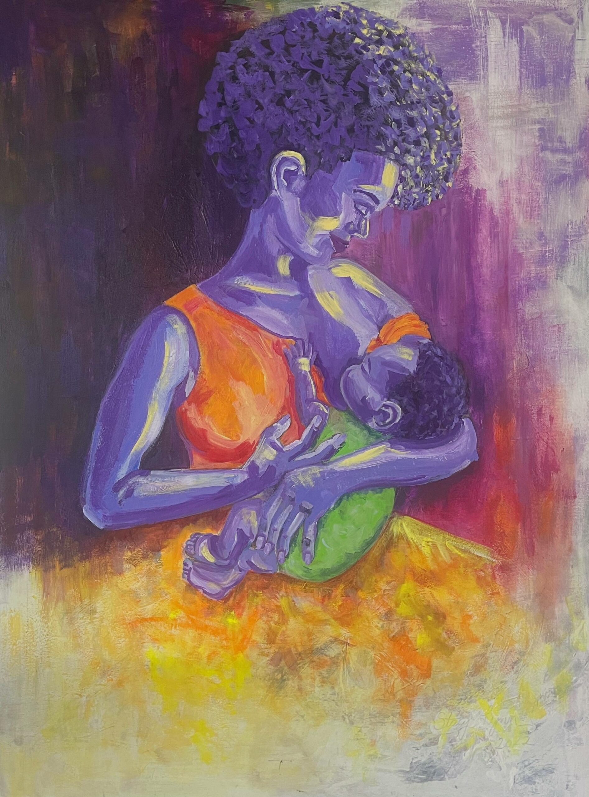 The painting embodies the essence of a mother’s love – boundless, protective, and nurturing. It encapsulates the sacrifices, devotion, and unwavering support that mothers offer throughout their lives. The eternal connection between a mother and her child, a bond that transcends time and space. This painting celebrates the remarkable capacity of mothers to cradle their children not only in their arms but also in their hearts, forever.